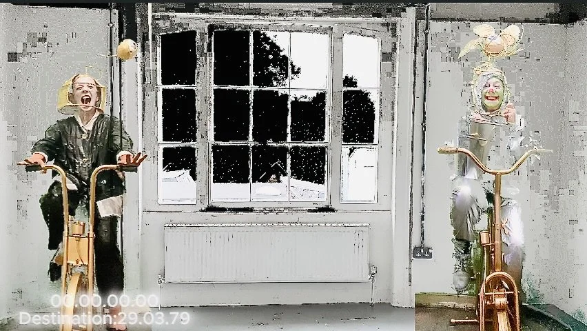 The Time Traveller encounters their alter ego, the Lawyer, in the space- time continuum. Water is thrown, the sequence disrupted.